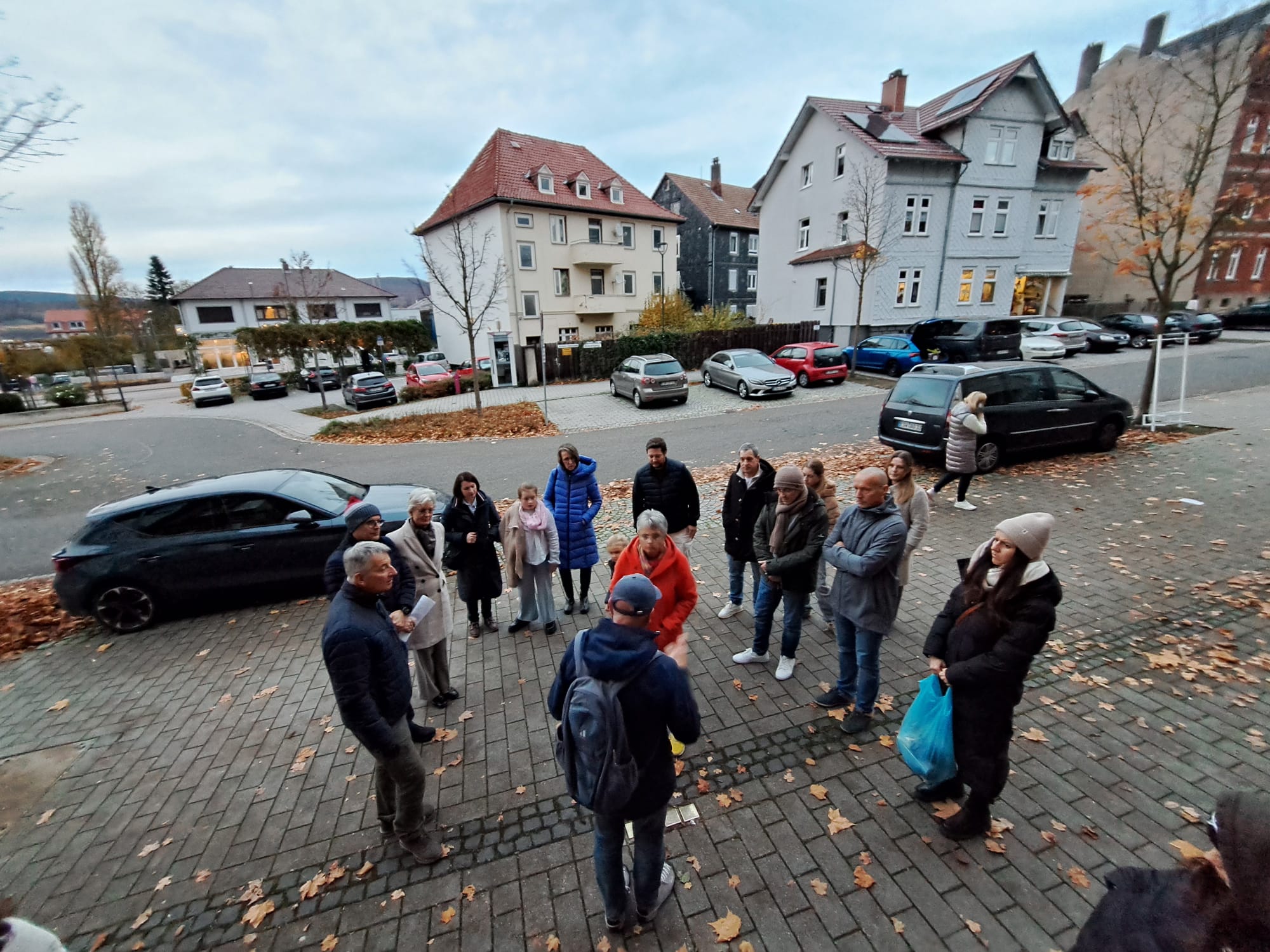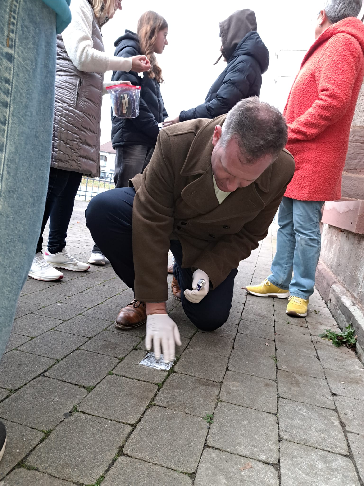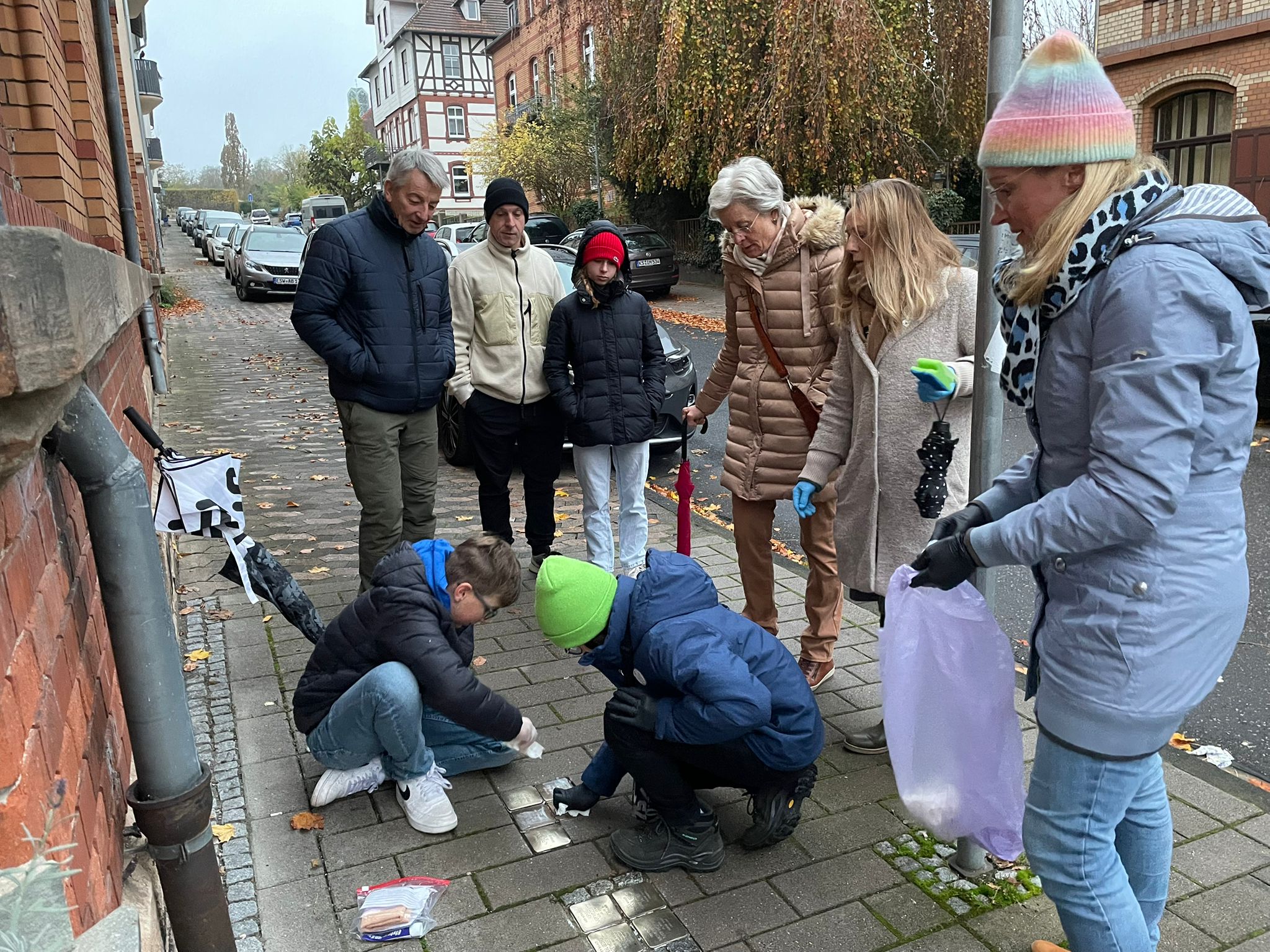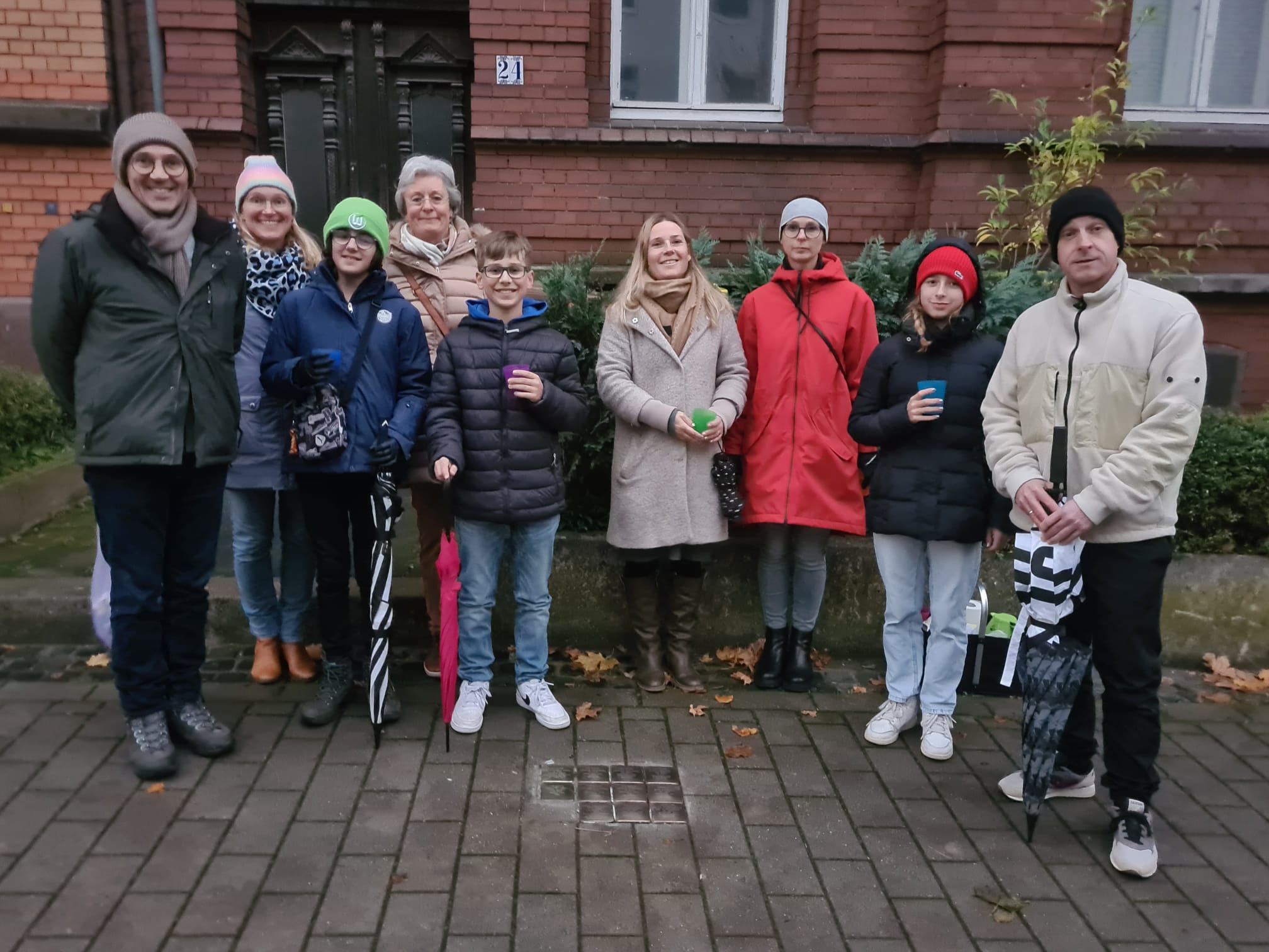 Jörg hat anschließend einige Zeilen zu den Geschehnissen am 08. und 09. November 1938 in Deutschland vorgelesen. Danach sind wir zehn los und haben gemeinsam die Stolpersteine gereinigt und der Opfer gedacht.