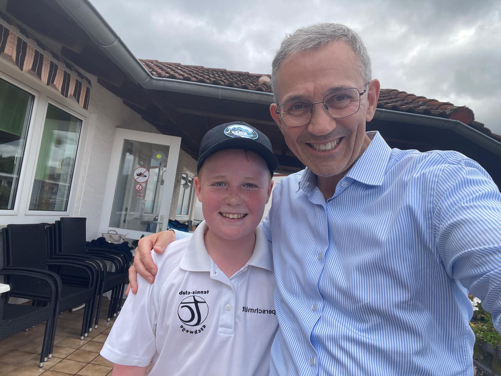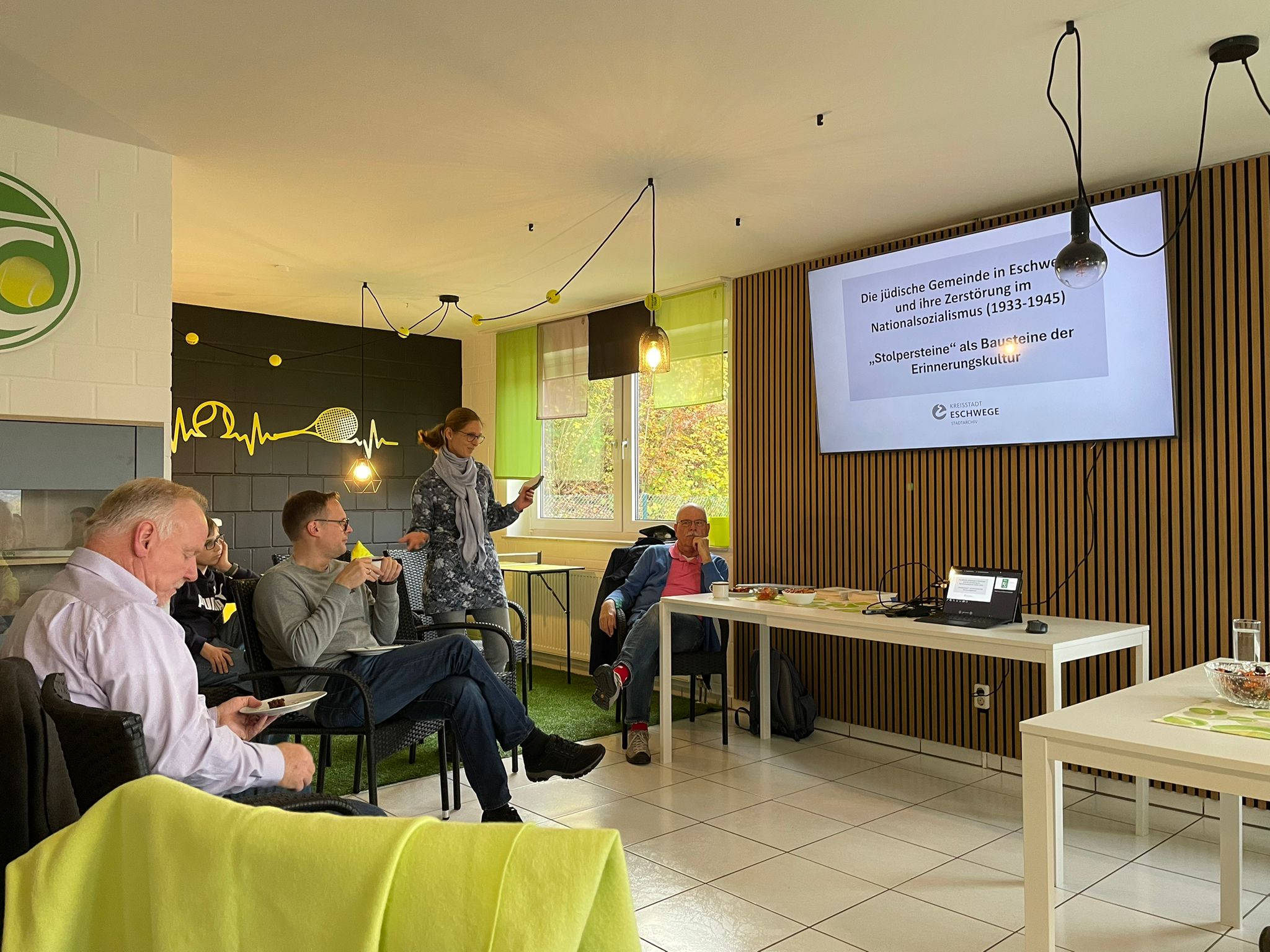 Zunächst trafen wir uns im Clubhaus des TC Eschwege. Torsten hat über die Bedeutung unserer Patenschaft berichtet. Gemeinsam schauten wir eine kurze Dokumentation über den Holocaust und der Verlegung der Stolpersteine an.