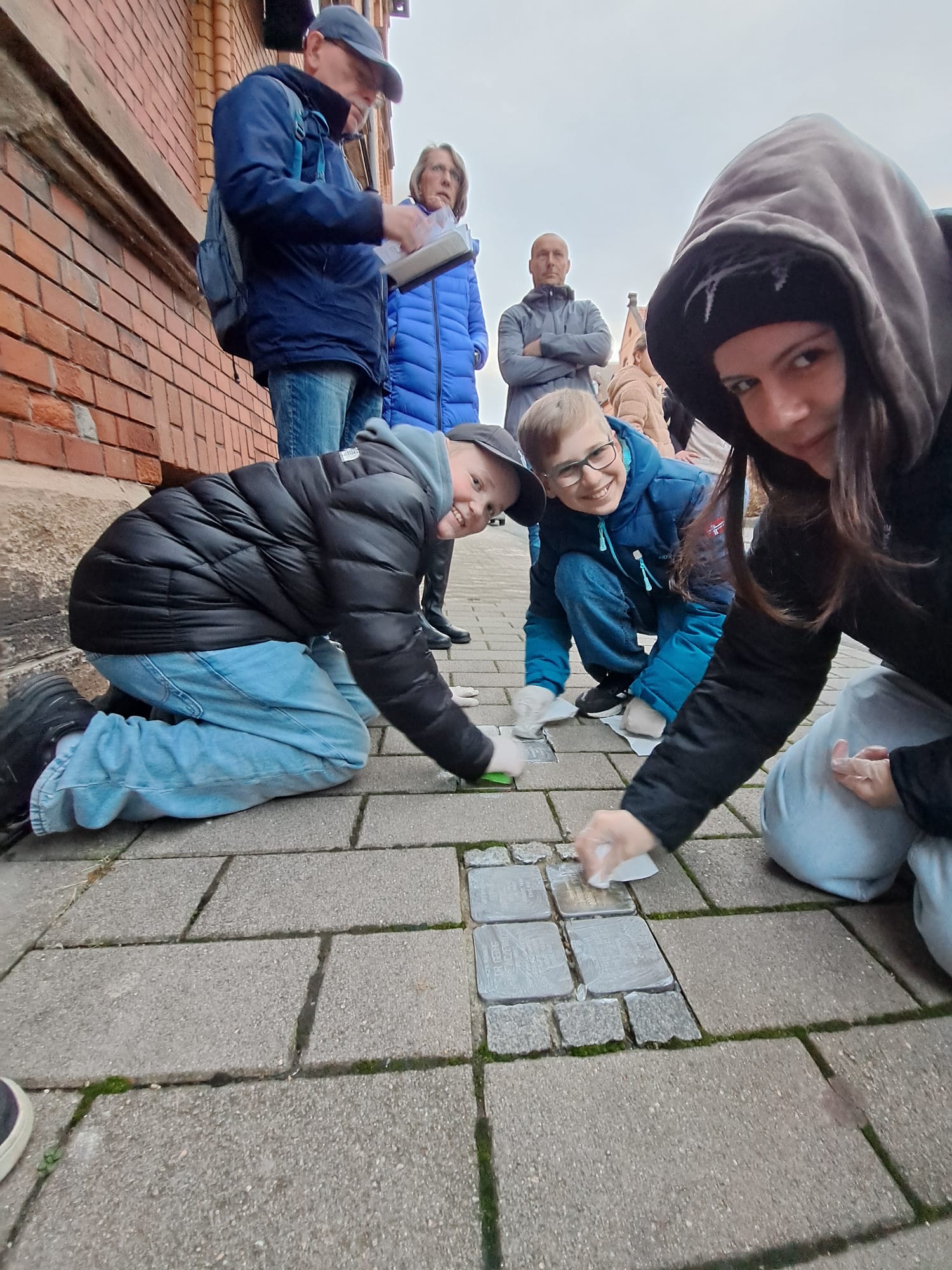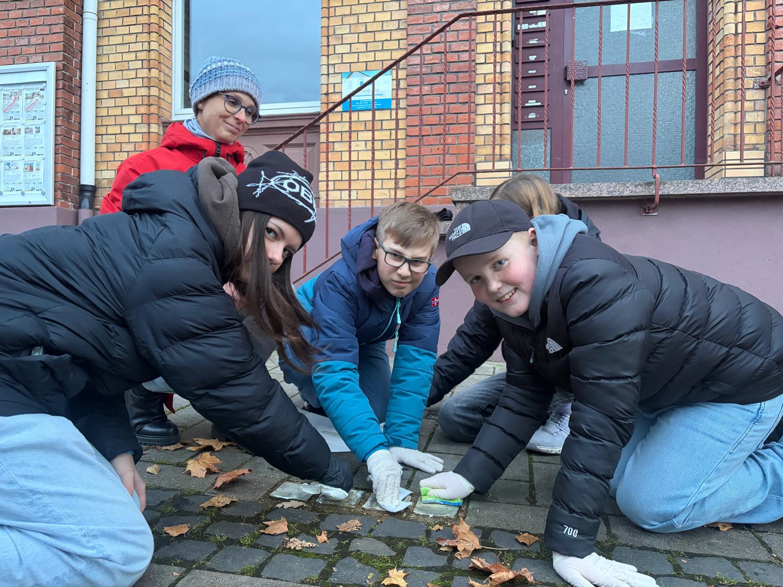 Welche Aufgabe haben wir als Paten? Mindestens einmal im Jahr pflegen und reinigen wir die Gedenkzeichen - also die Stolpersteine.